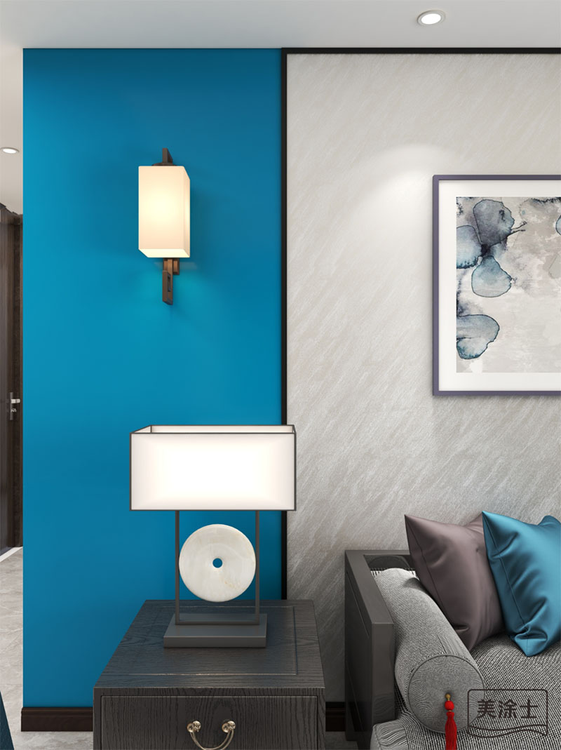美涂士國潮色蜻蜓藍5534-19A,潔不乏韻味,高雅卻不媚俗,儒雅的新中式,古典美學和現代美學的完美結合,簡化了傳統中式的繁復。將中式元素與色彩質感巧妙兼柔,營造出如水墨畫般朦朧的詩意美。