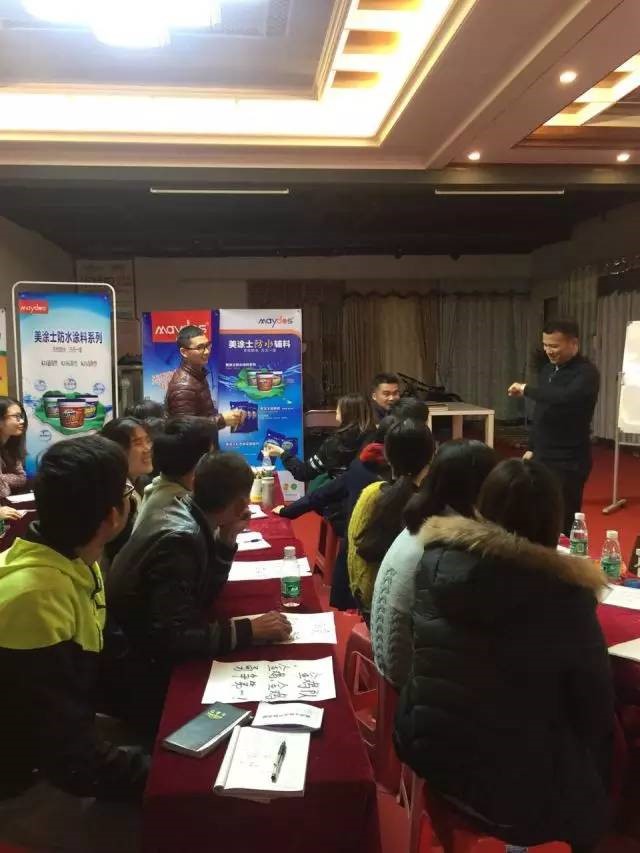 打造狼性團隊,開啟美涂士2017高速發(fā)展引擎,為美涂士實現(xiàn)戰(zhàn)略目標提供強勁動力——2017年2月8日,江門美涂士團隊舉辦了銷售綜合培訓會,以“相信專業(yè)的團隊力量”為主題,進行了一場囊括美涂士家裝體系產品、藝術涂料、基輔材產品、銷售模式、產品體驗與實操的綜合培訓。