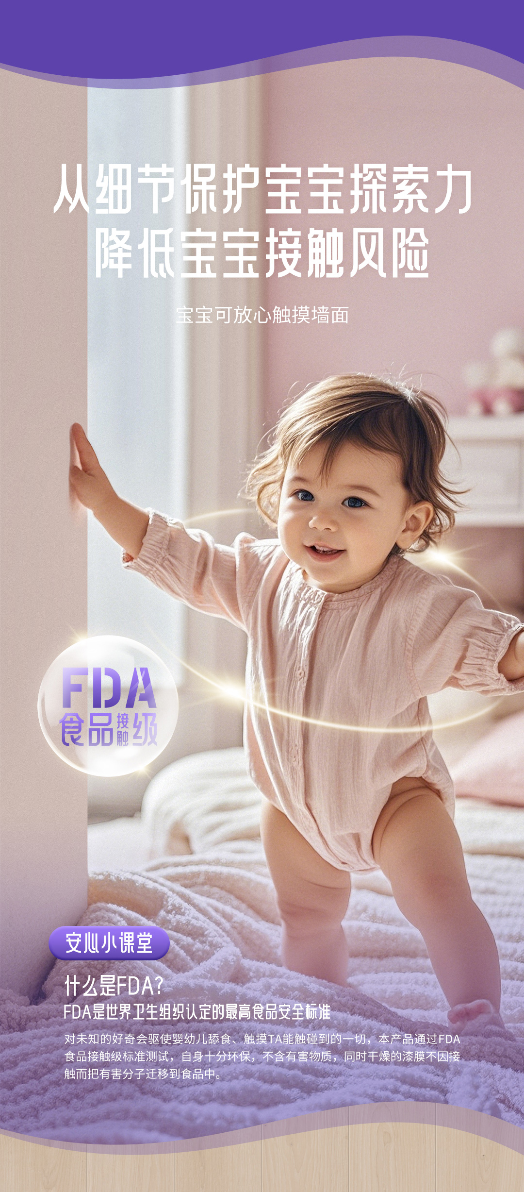 美涂士食品接觸級(jí)母嬰漆是一款專為母嬰研發(fā)設(shè)計(jì)的全能型環(huán)保墻面漆甄選綠色環(huán)保原料、抗醛優(yōu)質(zhì)乳液具有高科技凈化空氣技術(shù)氣味更清新更環(huán)保。產(chǎn)品符合美國(guó)FDA食品接觸級(jí)標(biāo)準(zhǔn)讓孩子凈享海洋般的自然、清新與健康在抗污方面采用天然生物貝殼粉使產(chǎn)品漆膜細(xì)膩達(dá)到I級(jí)抗污水彩筆可隨意涂鴉隨時(shí)隨地還寶寶一個(gè)干凈、潔白的墻面產(chǎn)品更是可以刷出多種質(zhì)感紋理效果同時(shí)具有護(hù)敏抗病毒、超強(qiáng)耐擦洗功能銀離子抗菌高達(dá)99.99有效抵御墻面各種常見細(xì)菌。真愛的呵護(hù)總是細(xì)致入微讓每一位家人都能凈享清新的家居環(huán)境。