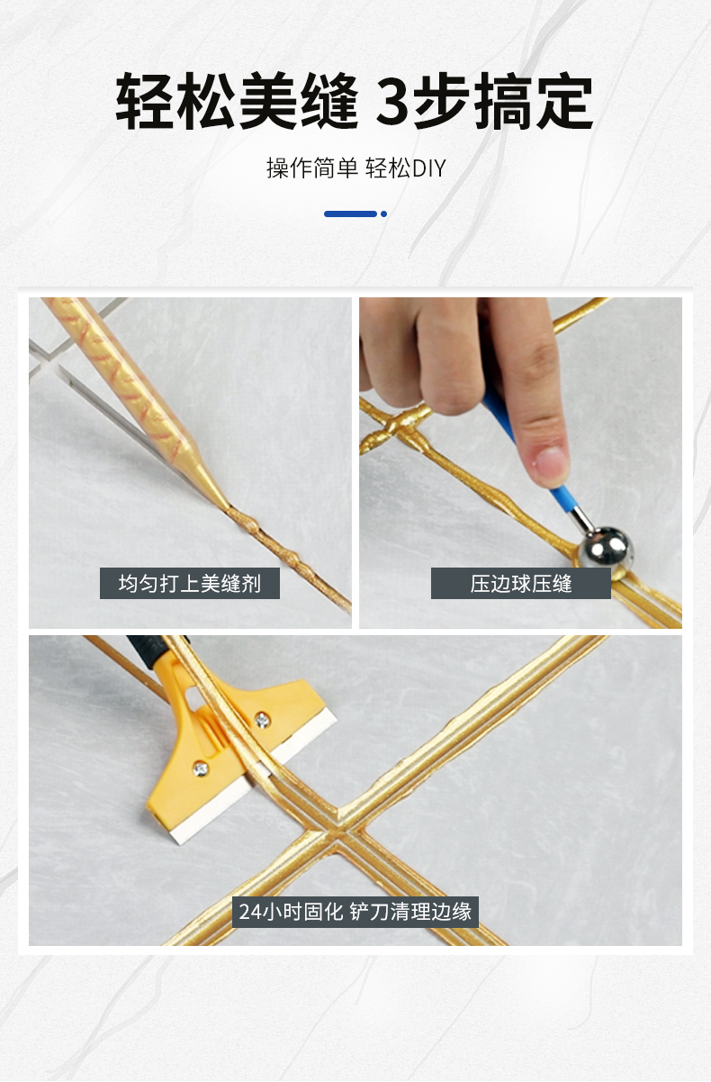 美易涂金裝防霉美縫劑擁有獨特釉面晶瑩亮澤,色彩豐富、鮮艷,色差小。同時還具備防霉效果,使瓷磚縫隙可以拖洗,減少縫隙滋生細菌概率,耐酸堿,耐洗刷,耐水泡,耐油污,穩定性強,不收縮,不開裂,不粉化,綠色環保,無任何有毒氣體及重金屬,對人體和環境無任何危害。